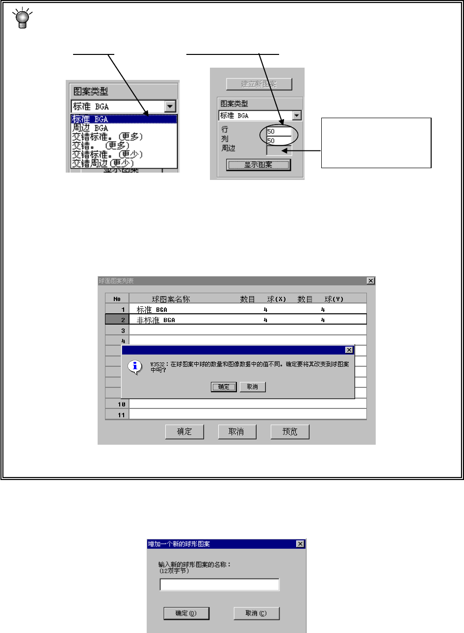 设置周边型BGA、交叉的周边型BGA(更多)、交叉的周边BGA(更少)球面图案时,要从周边开始