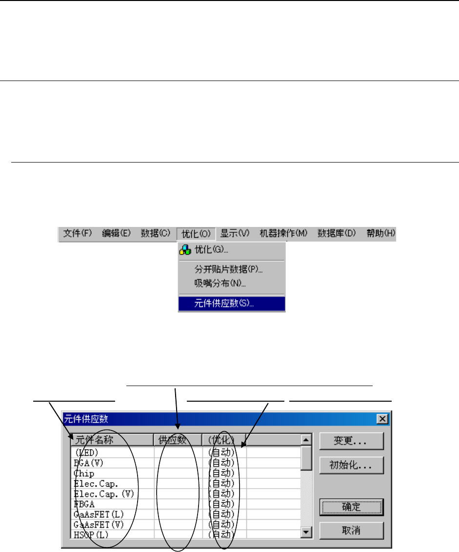 1) 从菜单栏中点击“优化”/“元件供应数”。