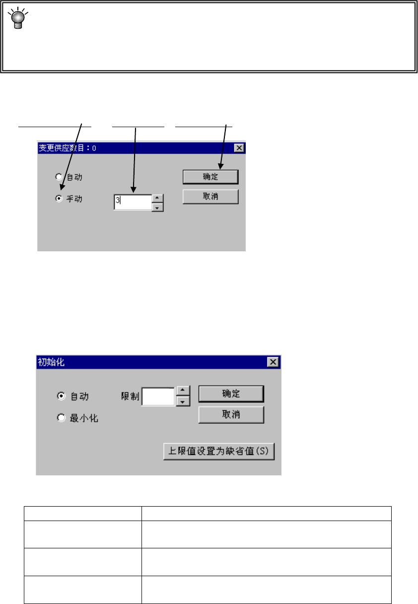 自动 自动对所有元件的供给数进行初始化。当为自动时,