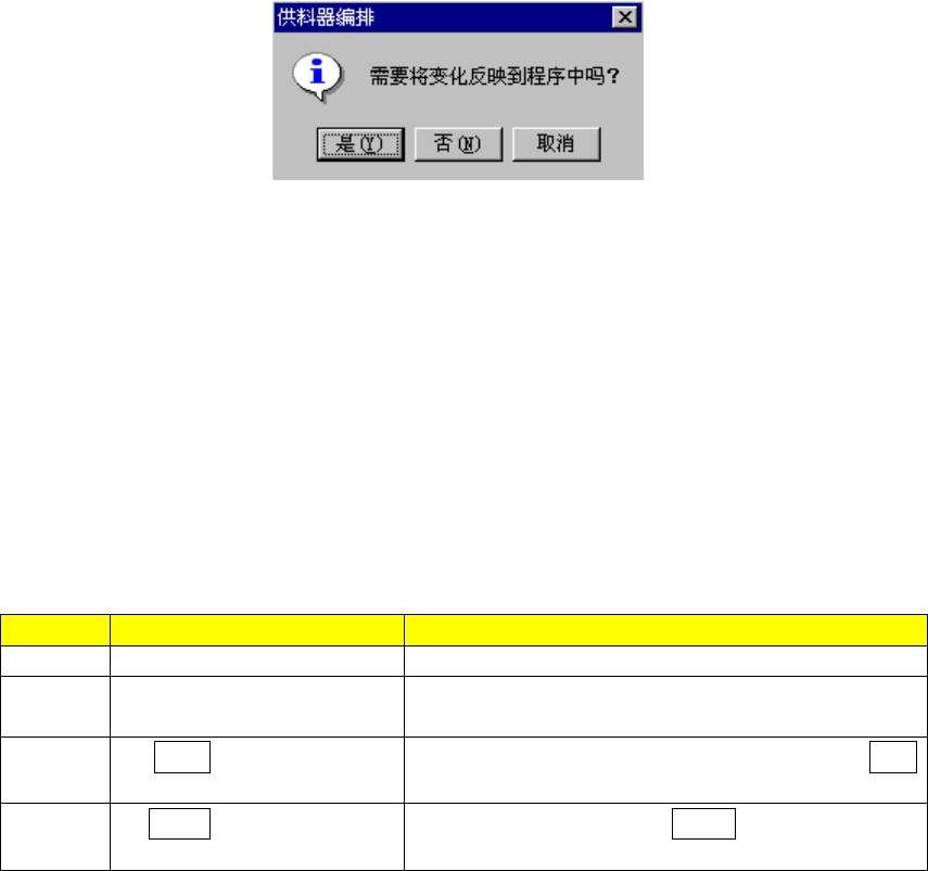 编辑后关闭送料器编排、工位选择画面时,会显示下列询问,问是否把编辑内容反映到程序数