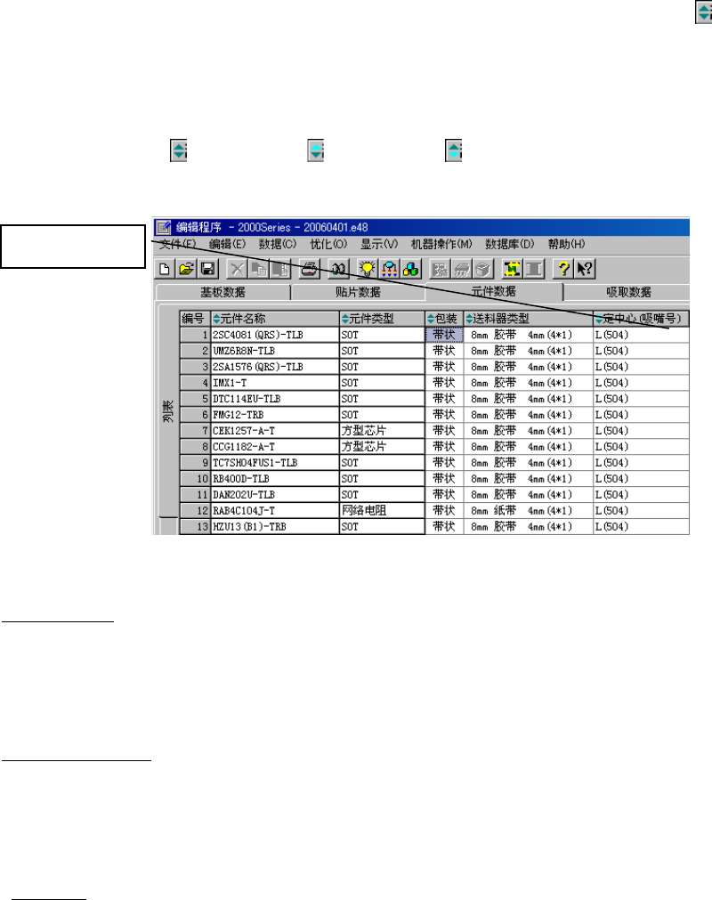 元件名称、包装状态、供给设备、供给(号码)均可做为排序键,使之显示出排序数据。