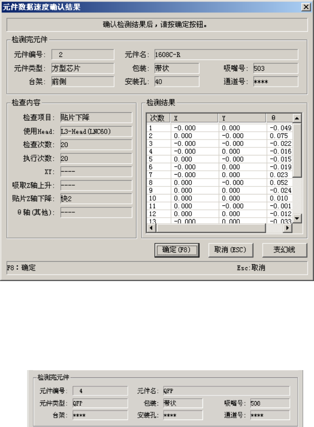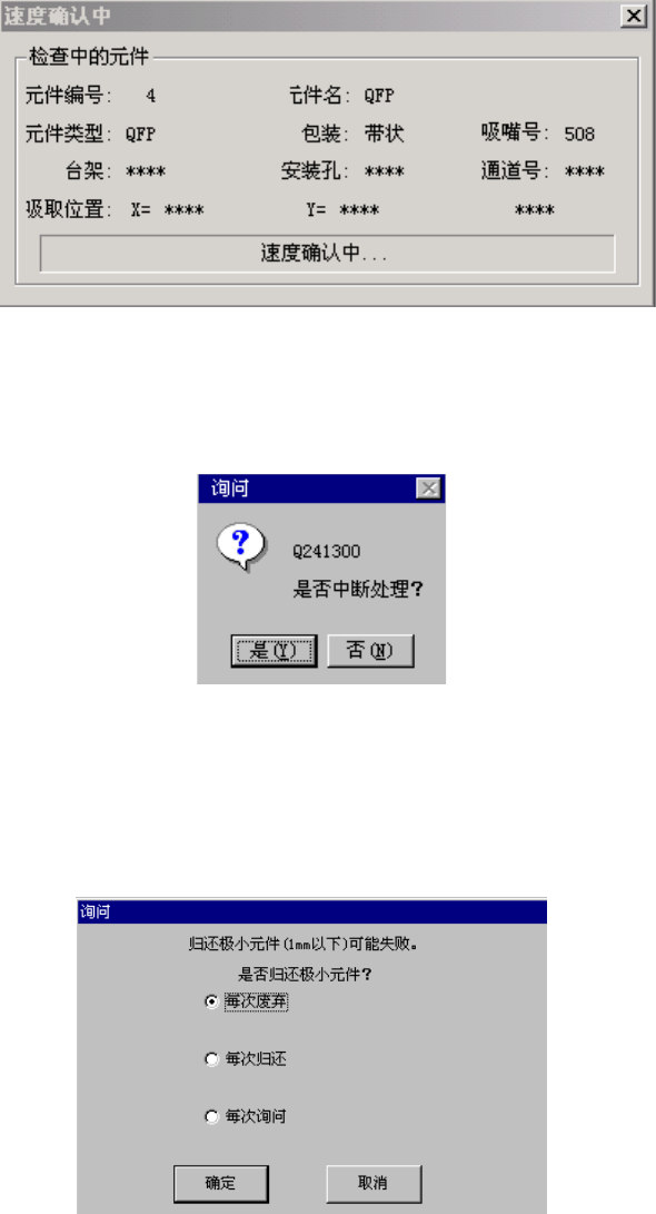 确认速度时出现下列对话框,显示正在确认速度的元件内容及吸取位置。逐项地实时显