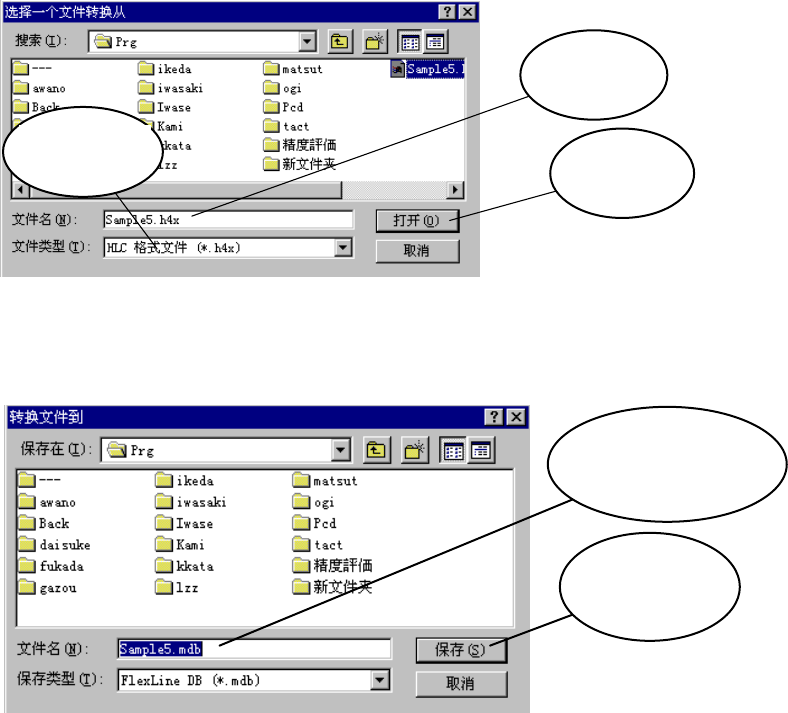 第1部 基本篇 第5章 数据库 5-6 ② 利用 HLC 数据库文件 选择后,显示如下“转换对象”画面。 ファイル名を入力 します。 [開く」ボタンを クリックします。 変換するファイルの 種類を指定します。 图 5.2.1-5 单击“打开”按钮后,显示“转换地址”对话框。 ファイル名を入力するか、 リストから選びます。 [保存 」ボタンをク リックします。 图 5.2.1-6 转换开始后, 数据由原来的文 件被复制为新文件, 此时任务…
