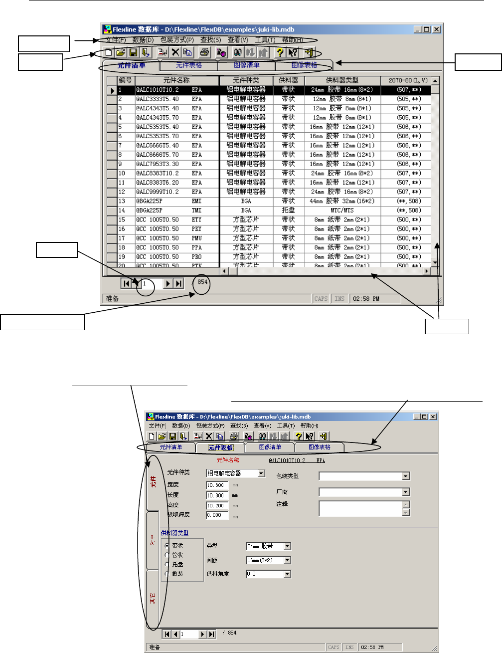 任务过程栏从画面上消失,新数据库文件的数据会显示在Flexline数据库窗口的元件清单上。