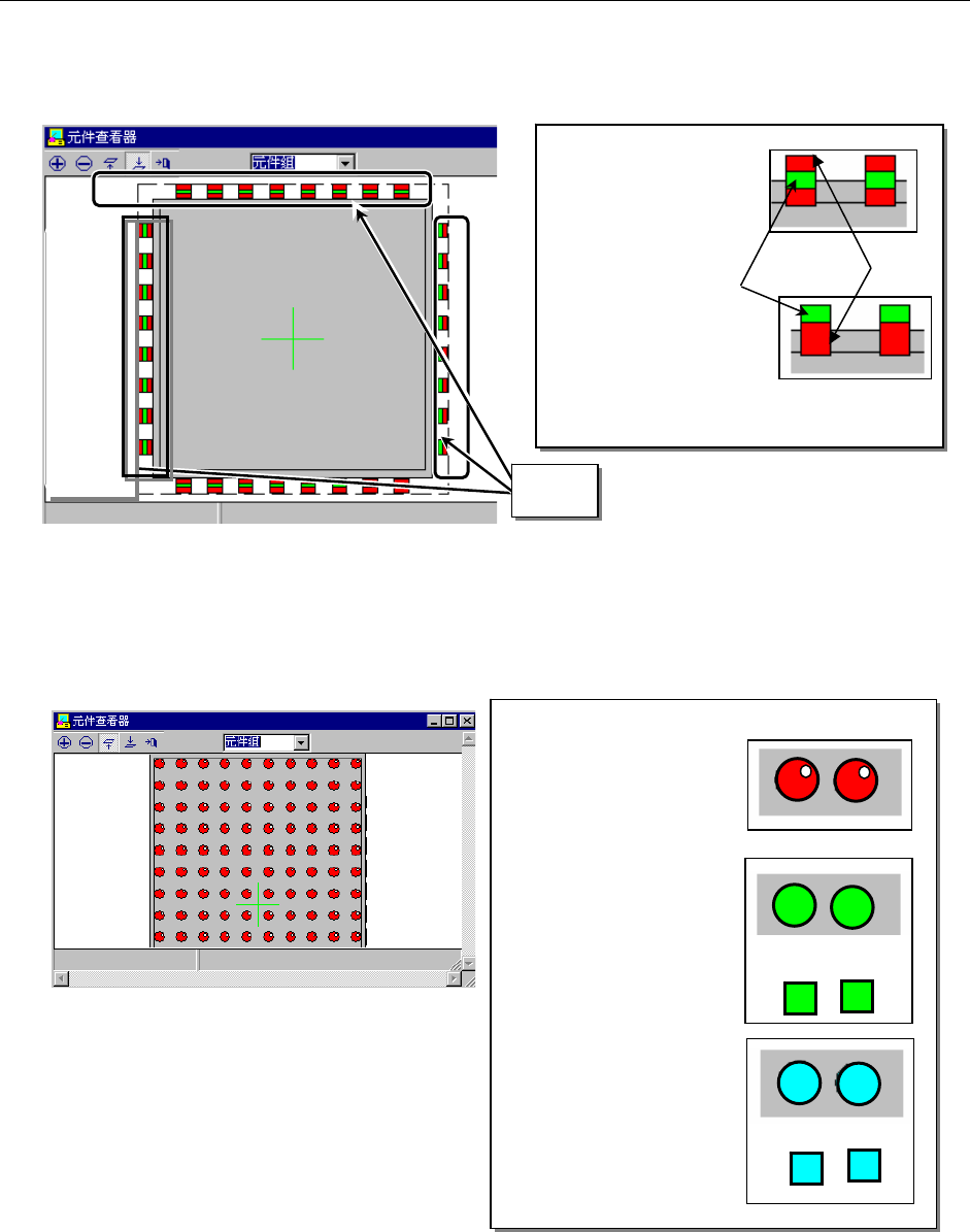 第2部 功能详解篇 第6章 通用图像 6-15 ◇球: 为了在红色圆形(涂色) 中表现出立体感,在右 上部标有白色的点。 ◇平面: 用绿色的圆形或正方形 来表示 。 ◇列: 用淡蓝色的圆形或正方 形来表示。 6-3-4 按元件类型区分“元件查看器”画面例 1) 外部引脚、内部引脚 图 6 -3-4-1 外部引脚元件画面显示例 2) 球、平面、列 球、平面、列采用各不相同的颜色显示。 图 6 -3-4-2 球元件画面显示例 ◇外部引脚: …