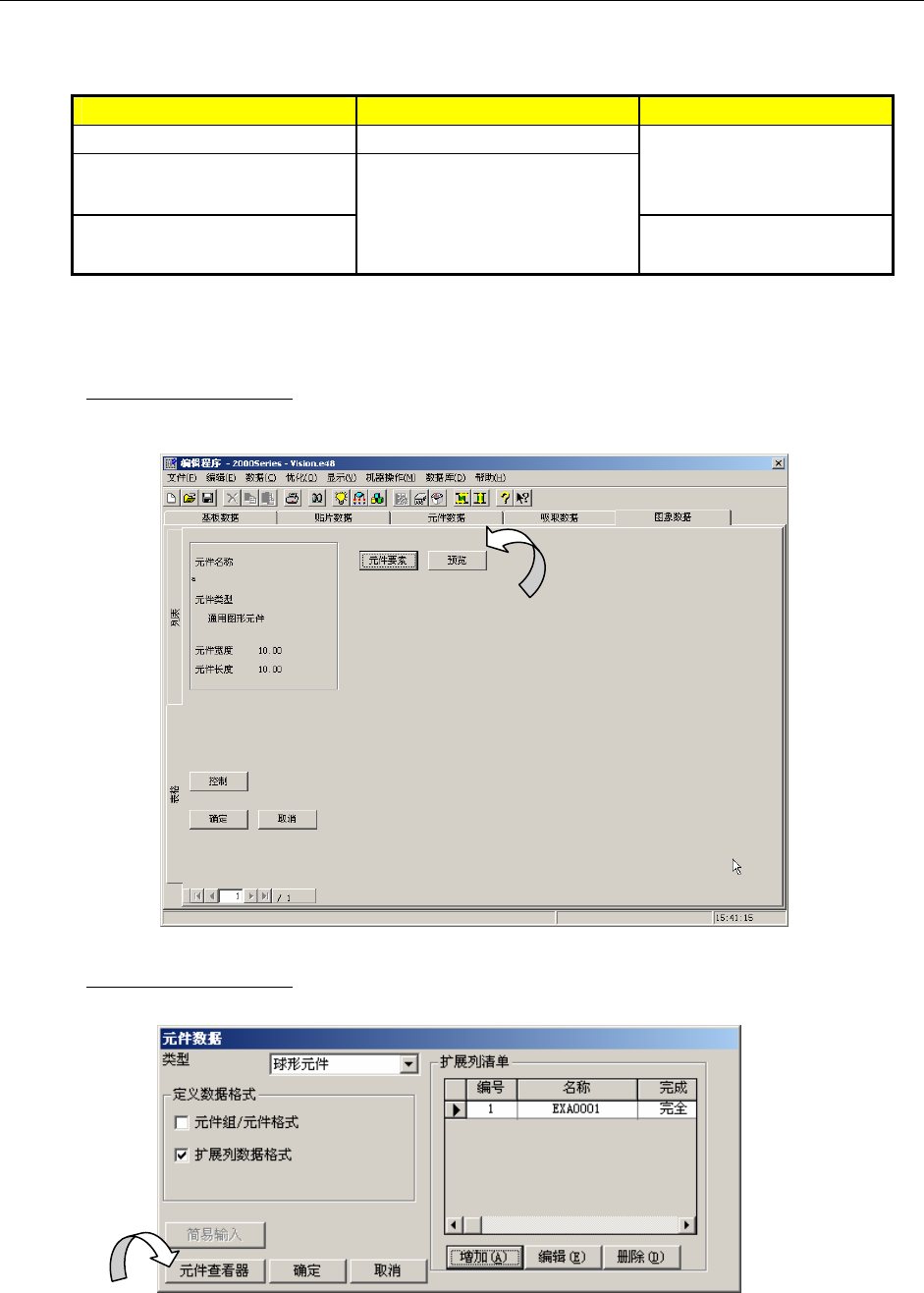 第2部 功能详解篇 第6章 通用图像 6-17 6-3-5 扩展列格式的元件查看器显示 扩展列格式的元件查看器画面,可以从以下3个画面调出显示。操作方法和显示内容因调出的 画面而异。 调出元件查看器位置 元件查看器之外的操作 显示内容 图像表格画面 必须打开元件查看器 元件数据画面 显示全部扩展列数据组 扩展列画面 不关闭元件查看器也可以追 加、 编辑数据。 追加、 编辑后, 按 “元件查看器” 按钮更新数 据,画面重新显示。 仅显示目…