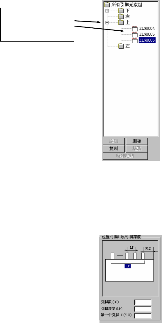 第2部 功能详解篇 第6章 通用图像 6-23 3) 引脚属性 选择引脚的类型,输入引脚的尺寸。 图 6 -4-3-5 引脚特征(鸥翼形引脚) 图 6-4-3-6 引脚特征(平板引脚) 4) 元件组的编辑 在“引脚元件组一览表”画面中进行元件组的追加、删除或复制。其操作方法与Windows的浏 览器的操作方法相同。 ①选择要追加、删除或复制的文件夹。 ②选择了追加、删除、复制后即可执行 。 选择了复制时,还需选择“粘贴”或“覆盖 粘贴”…