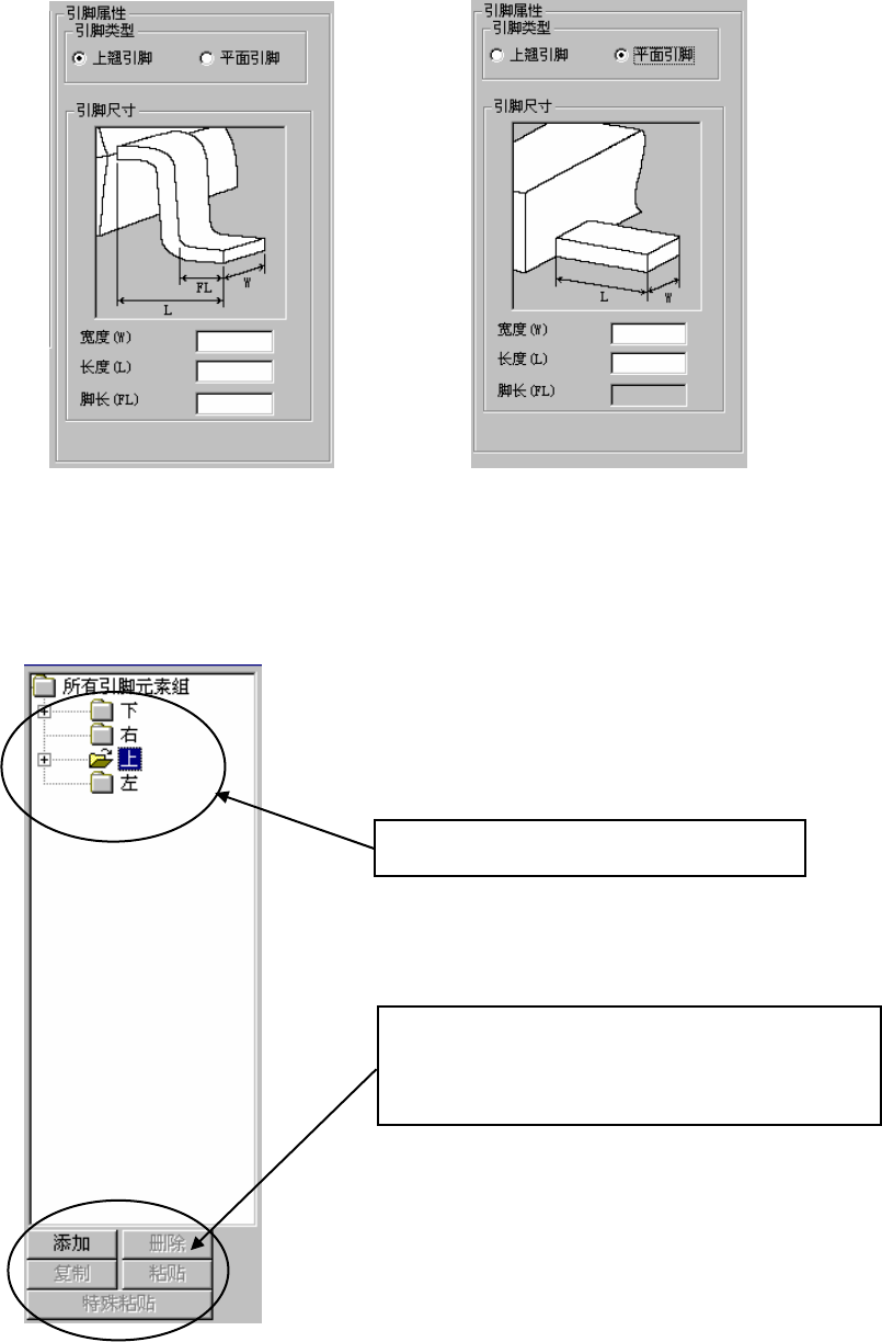 图 6-4-3-5 引脚特征(鸥翼形引脚) 图 6-4-3-6 引脚特征(平板引脚)
