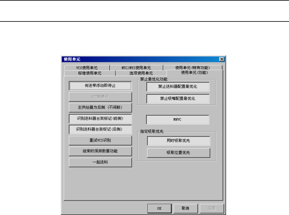 选择机器设置的使用单元,单击使用单元(功能)标签后,显示下图。MNVC 按钮为凹陷的,MNVC 功能