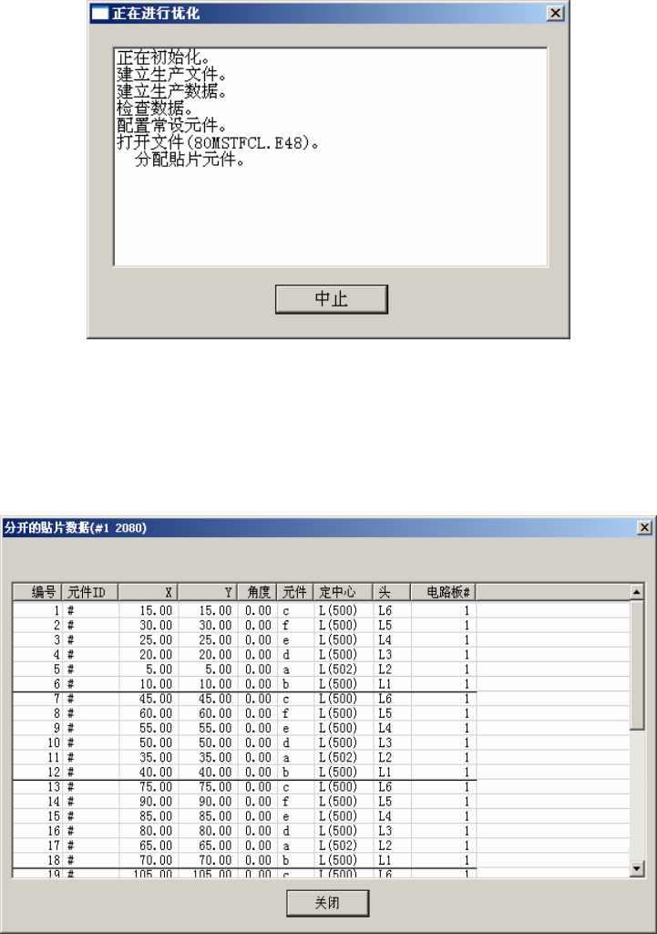 LNC60 贴片头。选择了“优化”-“分开的贴片数据”之后,显示如下画面,可以确认优化结果、图像