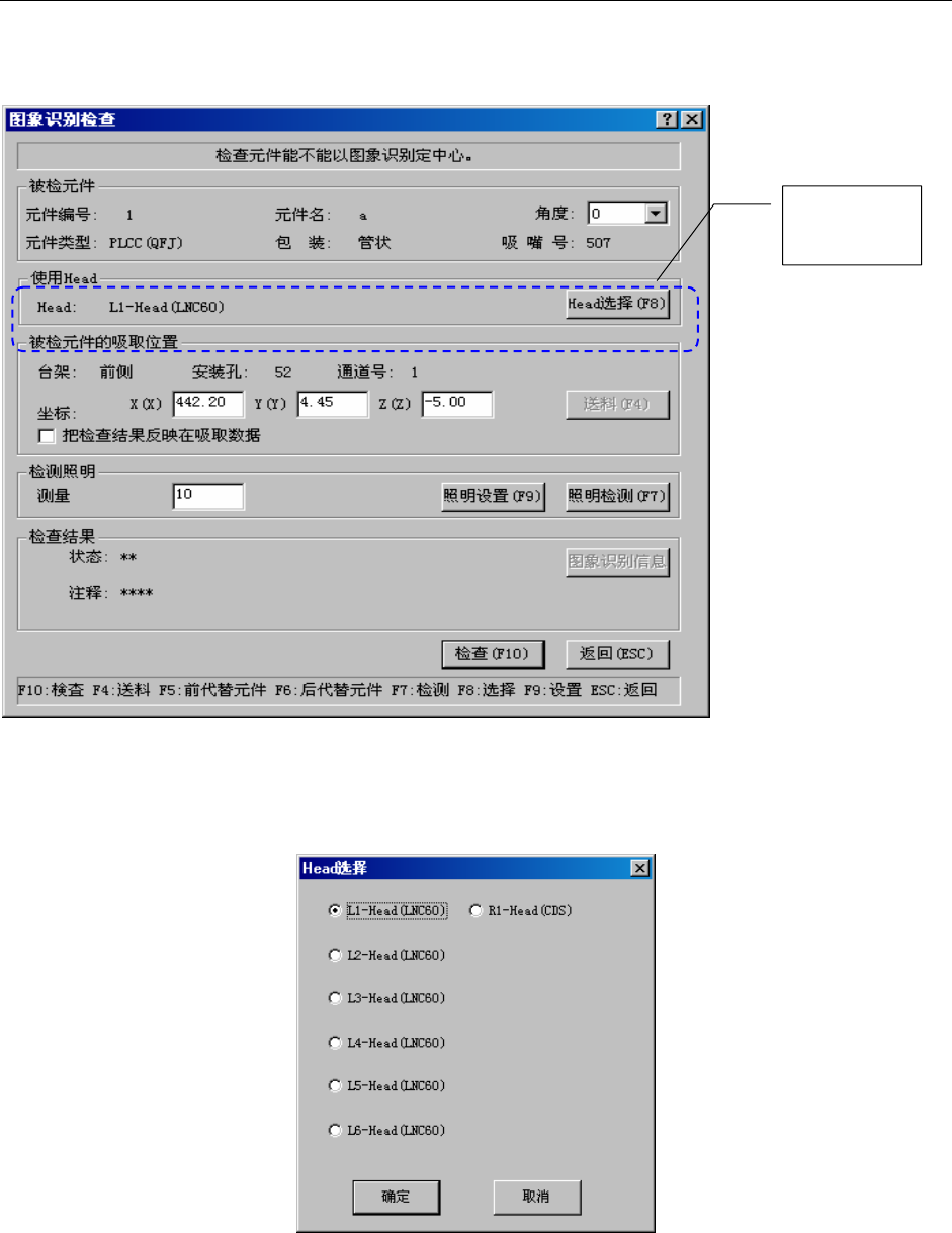 片头。想用 LNC60 贴片头进行图像识别检查时,请按使用的贴片头的“Head 选择”按钮。