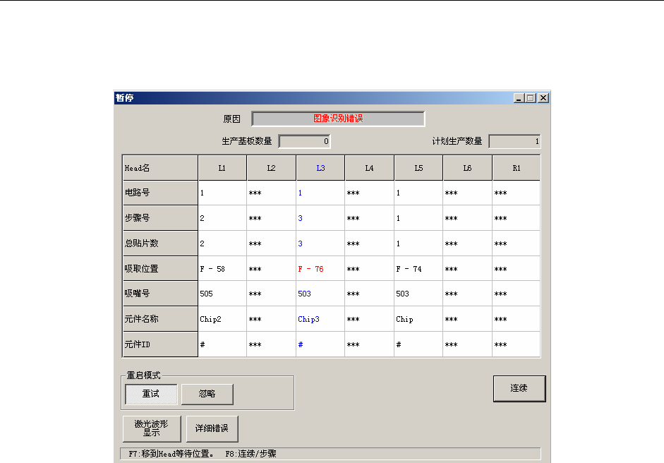 在操作选项中选中“发生错误时暂停”的情况下,从如下暂停画面可以进行重新显示/保存发生图像识