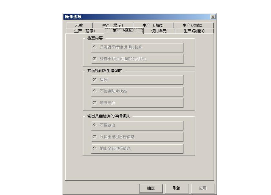 第2部 功能详细编 第7章 操作选项 7-12 7-2-6 设置生产时的检查选项 设置共面(选项)。 (注:本装置成 为非对应。) 图 7 -2-6 生产时的检查选项