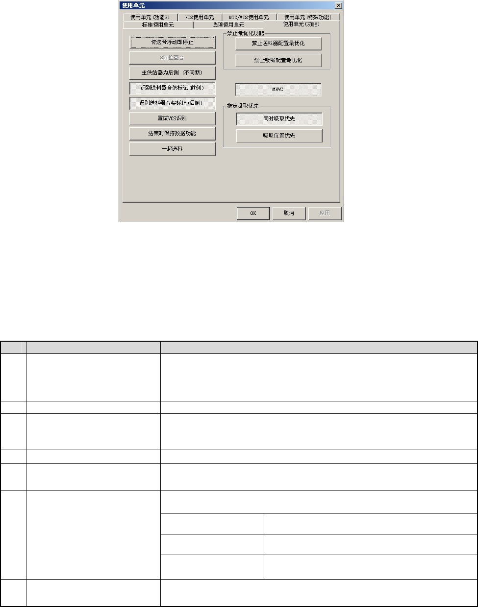 选择“使用单元(功能)”标签后,显示如下“使用单元(功能)设置”画面。