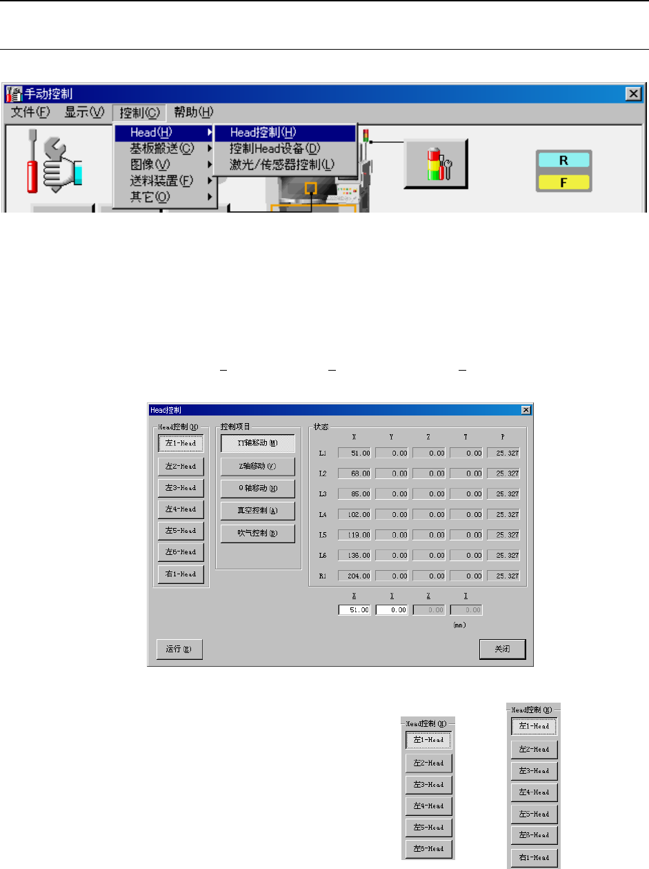 贴片头(Head,下同)项目包括“Head控制(H)”、“控制Head设备”、“激光/传感器控制”。
