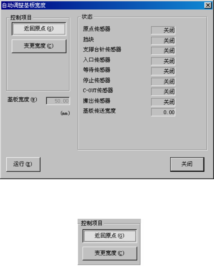 从菜单栏中选择“控制”/“传送系统”/“自动调整基板幅宽”,则显示如下的自动基板宽