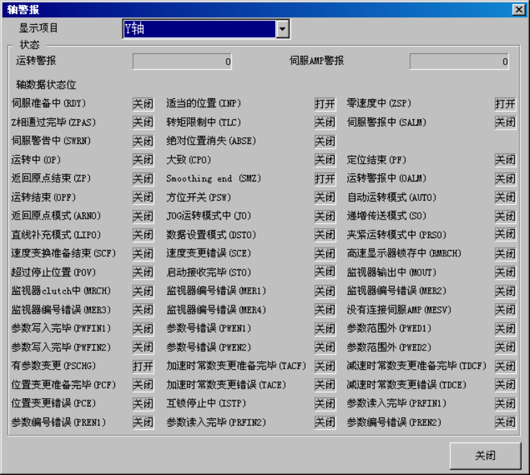 操作开/关,以显示原点传感器、界限传感器的状况。