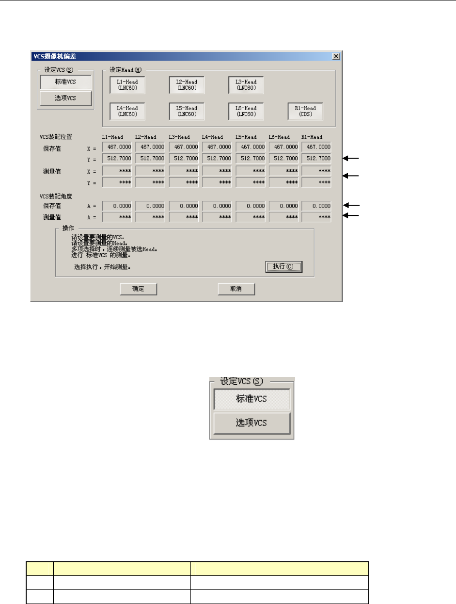第2部 功能详细篇 第1 1章 自动校准 11-11 11-2-4 VCS偏差(只限KE-1080) 设置相对于各VCS摄像机设计位置的偏移值。 只限于VCS识别元件,贴片向一定方向偏移时,进行再设置。 设置时,使用CAL块。 图 11-2-4-1 VCS 偏差 设定VCS 用选择按钮选择设定对象VCS(只能选一个)。 在机器设置的“使用单元”设置中没有选中的(不使用)的组件,不能选择。 设定 Head 用选择按钮(可选择多个)…