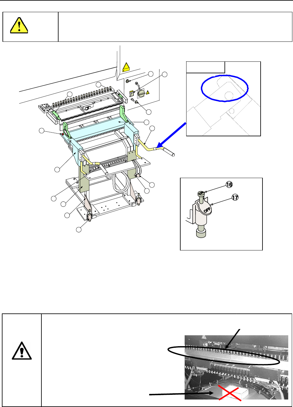 · 用统一更换台将送料器台安装在机器主机上时,在各种送料器吸取位置