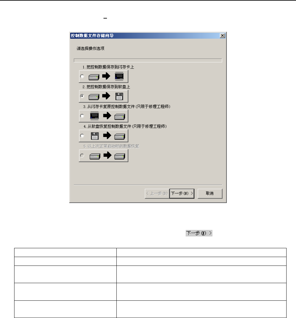 (补充) 在将控制数据文件保存到软盘或硬盘中时,需先压缩后再保存。从软盘或硬盘中进行恢复