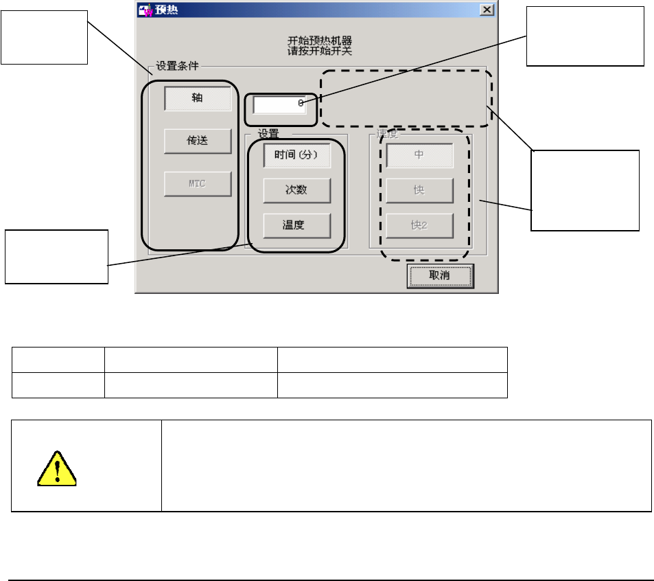 预热对象,从轴、传送、MTC 中选择(初始设置为“轴”)一项。