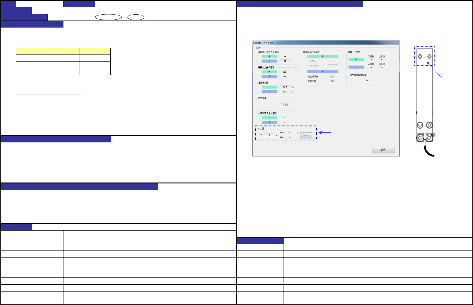 QA表 机种 确认方法 ① 将厚薄规或与之相当的厚度插入空隙内进行确认。 ② 将厚薄规或与之相当的厚度插入空隙内进行确认。 ① 托架与测量头端面的距离: 1.0±0.15mm 以万用表确认推入测量头时两测量头未接触而导通。 ② 测量头之间的间隙: 0.1±0.02mm ③ 以千分表确认 ③ 测量头上面平面度: 0.2mm ④ 把 0.05mm 的垫隙片紧贴测量头前端部,以目视确认。 ④ 测量头高低差: 0.05mm以内 并且,通过手感确…