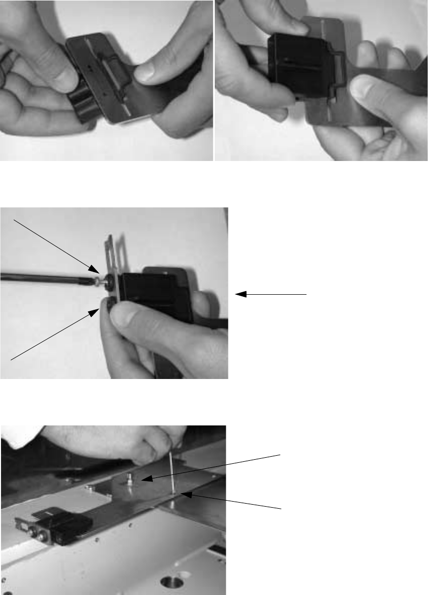 Instructions for changing catch on component feeder table HS-50 11/2001 Issue 14 : Remove the guar d. : Remove the four screws that hold the swi tch cov er plate i n place and then remo ve it. : Fix the ne w swit ch cove…