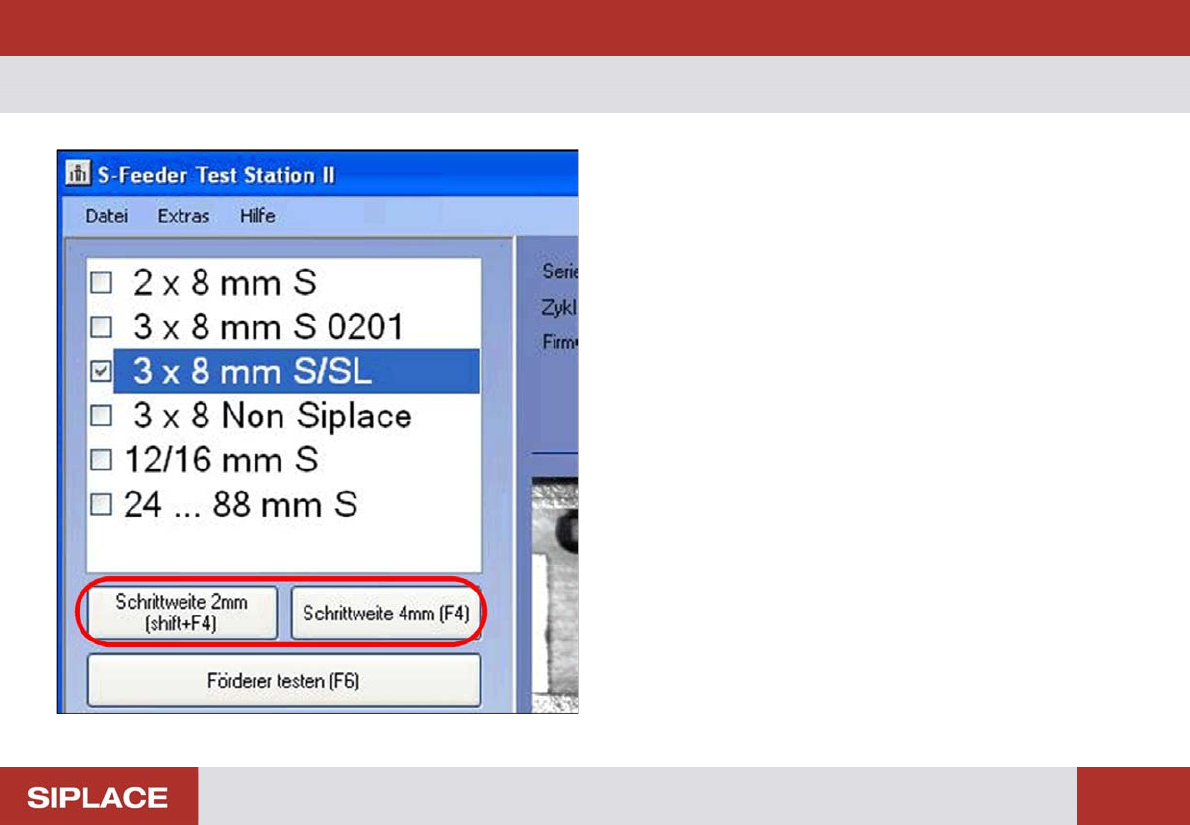 Prüfung durchführen – Schrittw eite auf 4 mm einstellen 25 – S c h r it t w e it e a u f 4 m m e in s t e lle n Der zu teste nde Förde rer kan n auf eine beliebige Schritt - weite eingestellt sein. Zum Testen ist eine Sc…