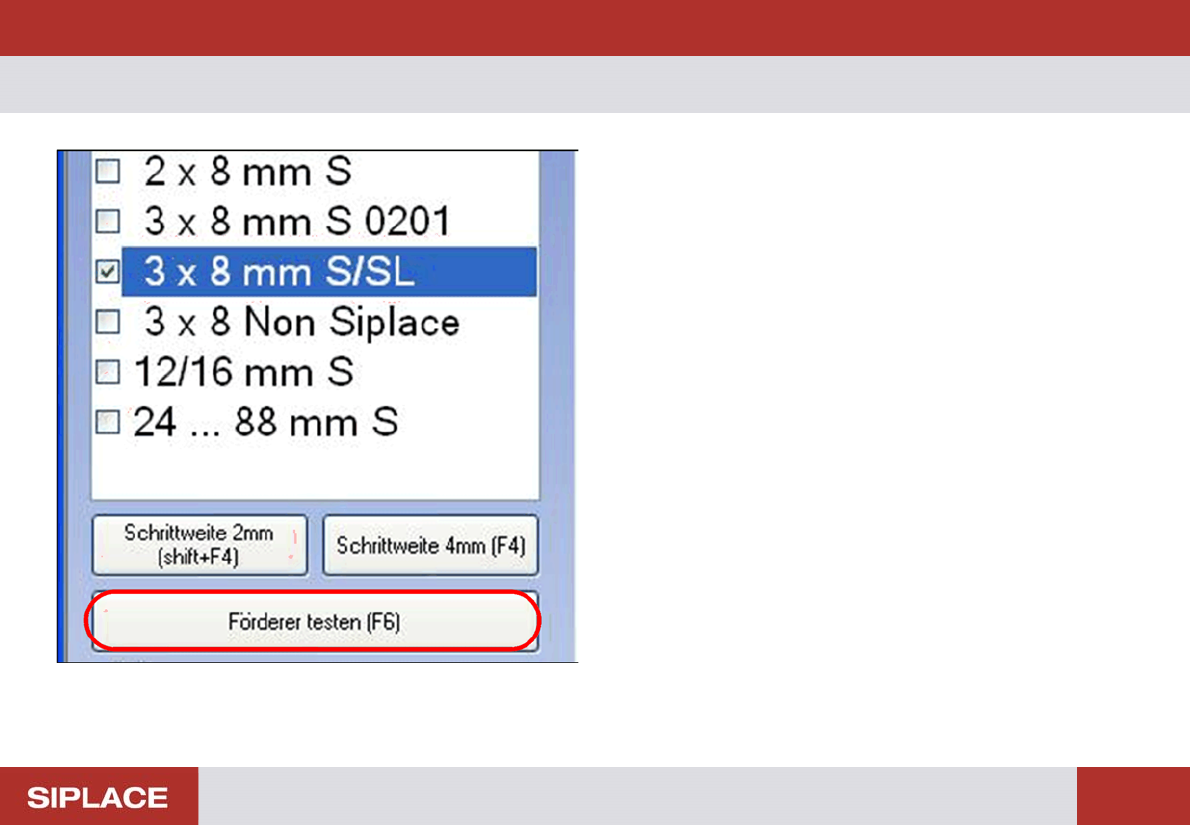 ► Klicken Sie auf die Schaltfläche Förderer testen (F6)