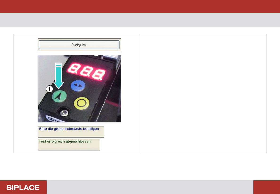 Funktionstest – Displaytest 53 – D is p la y t e s t Test der Anzeigeelemente Betätigen sie den Butt on „Displ ay test“. Die Anzeige blinkt mit allen Display – E lementen. Z u m B e e n d e n d e r F u n k t i o n b e t …
