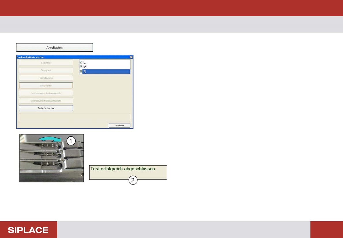 Funktionstest – Folienabzug 54 – F o lie n a b z u g Test des Folienabzugmo tors und der Licht schranke in der Folienschw inge. Betätigen sie den Button „Folienab zugtest“. Die Software fordert sie nach einander auf (1),…