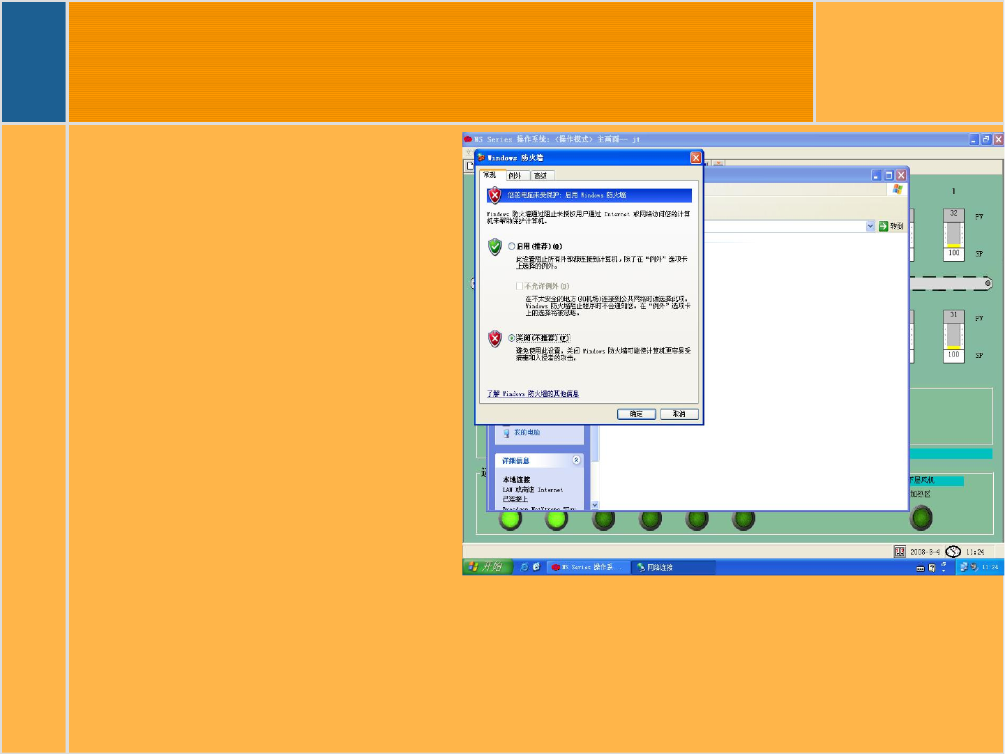 Science And Technology 2010-1-19 JT 何隆海 一 计算机及软件部分 2 ) KIC24/7 系统的 TPU 默认 IP 为 10.254.254.128 , 电脑端使用的 IP 为 10.254.254.1 子网掩码为 255.255.255.0 不需设网关和 DNS 3 )请在高级里关闭防 火墙,否则会对软 件的正常通讯造成 干扰