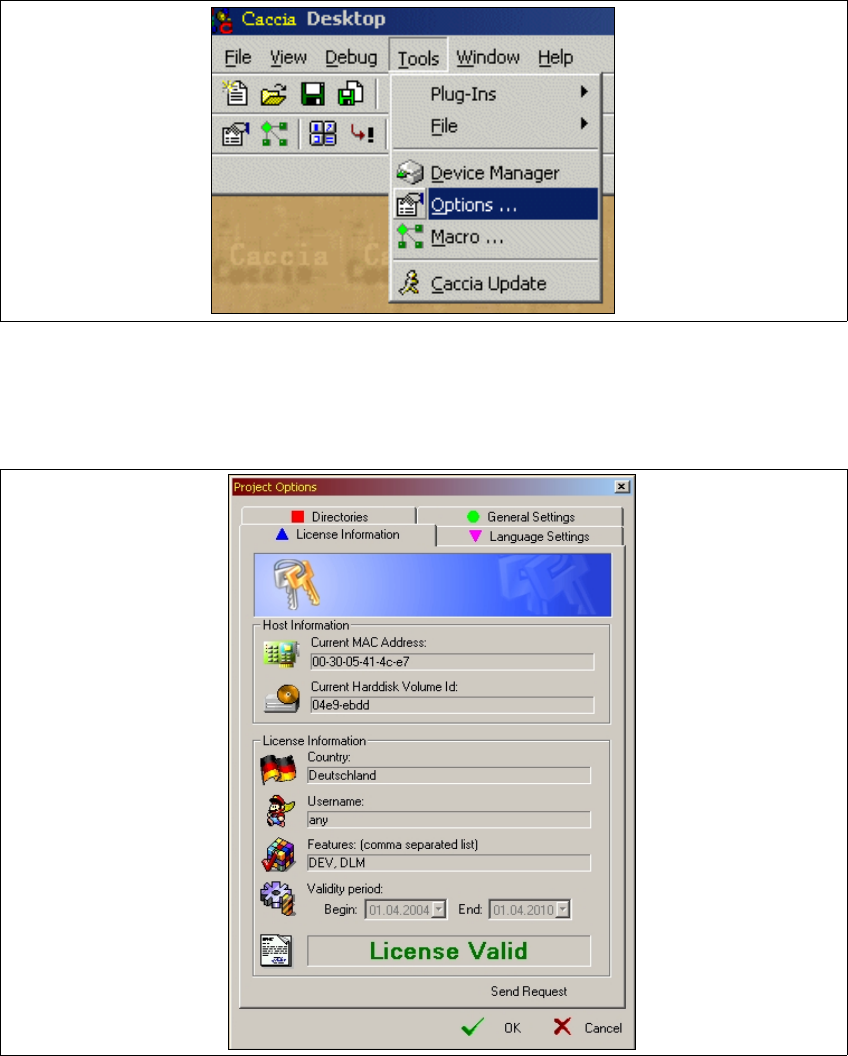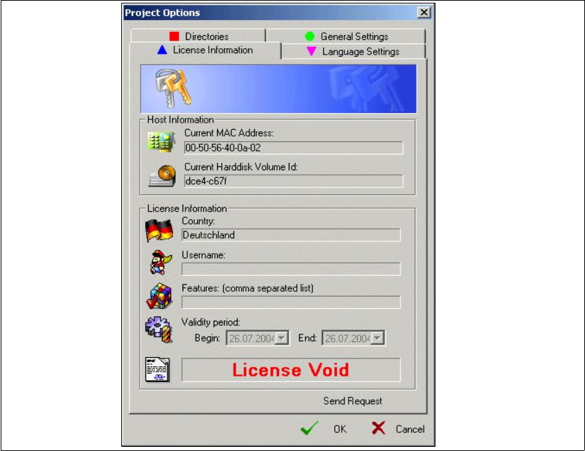 Abb. 1 - 8 Project Options - License Information