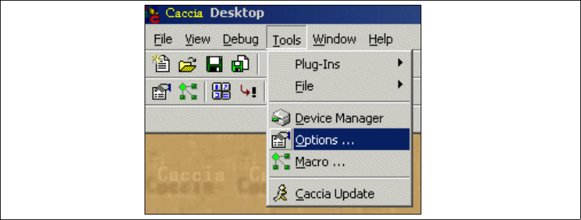 – Option für Update-Meldung muss in CACCIA aktiviert sein. Dazu gehen Sie wie nachfolgend