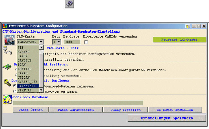 → Wählen Sie die CAN-Karte, die auf Ihrem System installiert ist aus. Dazu betätigen Sie in der