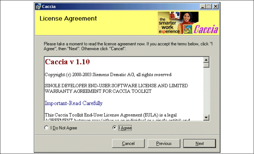 Fig. 2 - 12 Installing CACCIA - License Agreement