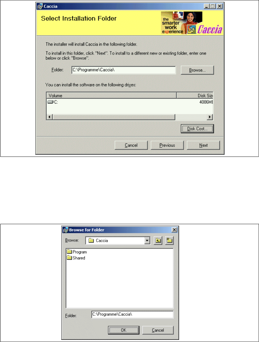 Fig. 2 - 14 Installing CACCIA - Browse for Folder