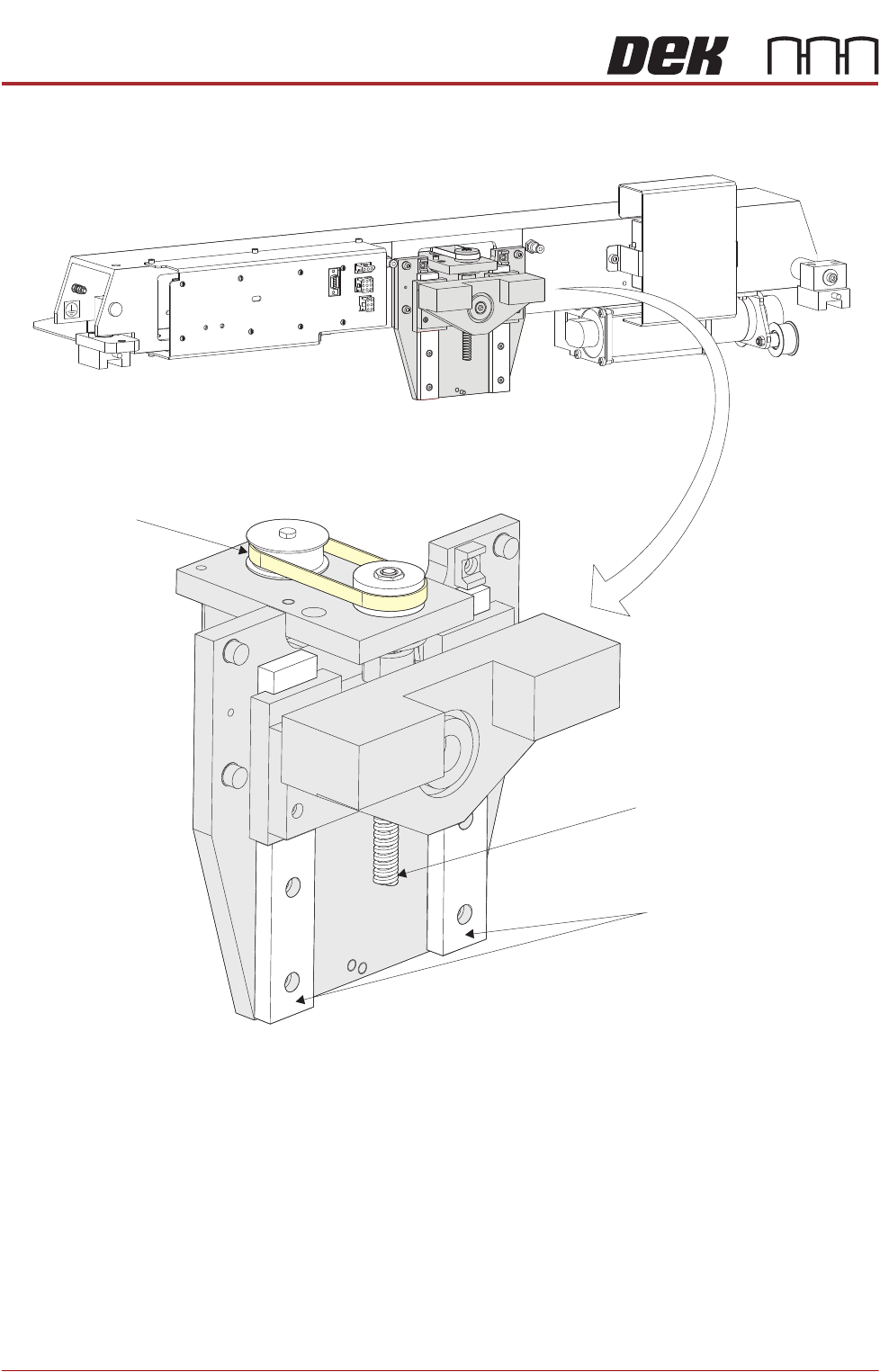 PREVENTIVE MAINTENANCE CLEANING, LUBRICATION AND MAINTENANCE DIAGRAMS 28.70 Technical Reference Manual Chapter Issue 5, Aug 14 Figure 28-12 ProFlow Mecha nism View o n Fr o nt o f Print C arriage Drive Belt Leadscrew Lin…