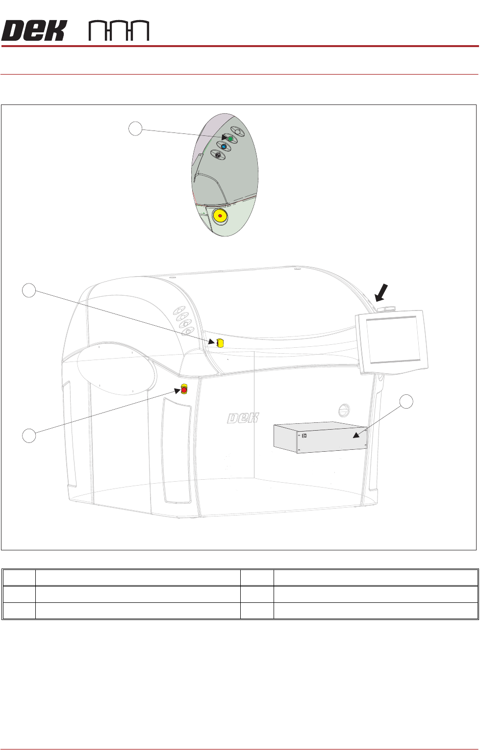 2 Front Emergency Machine Off Switch 4 Start Button