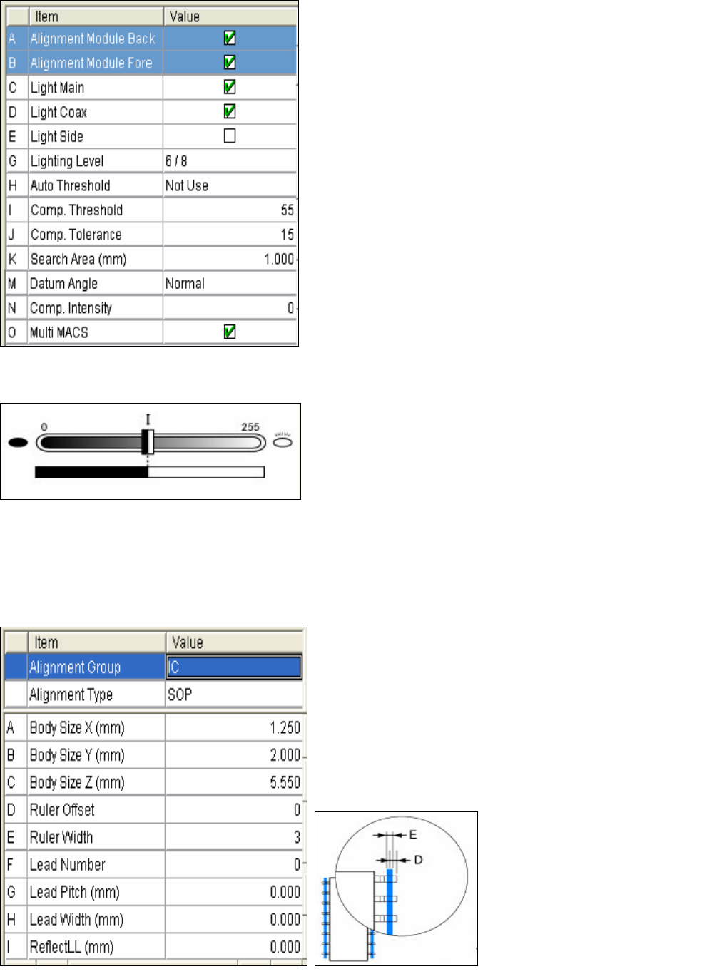 Comp. Intensity:规定元件的最小亮度,如设为 30,当某个元件识别时平均亮度小于 30 则机器会以不良材料