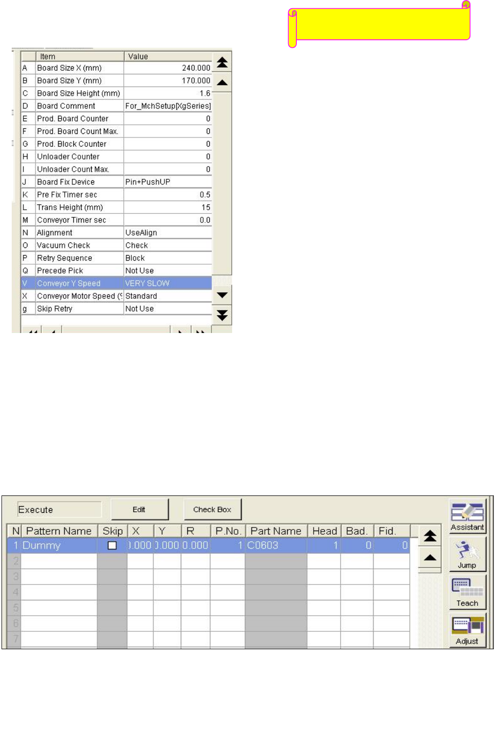 Conveyor Y speed:有 FAST、MIDDLE、VERY SLOW 选项,表示 TABLE 移动的速度.