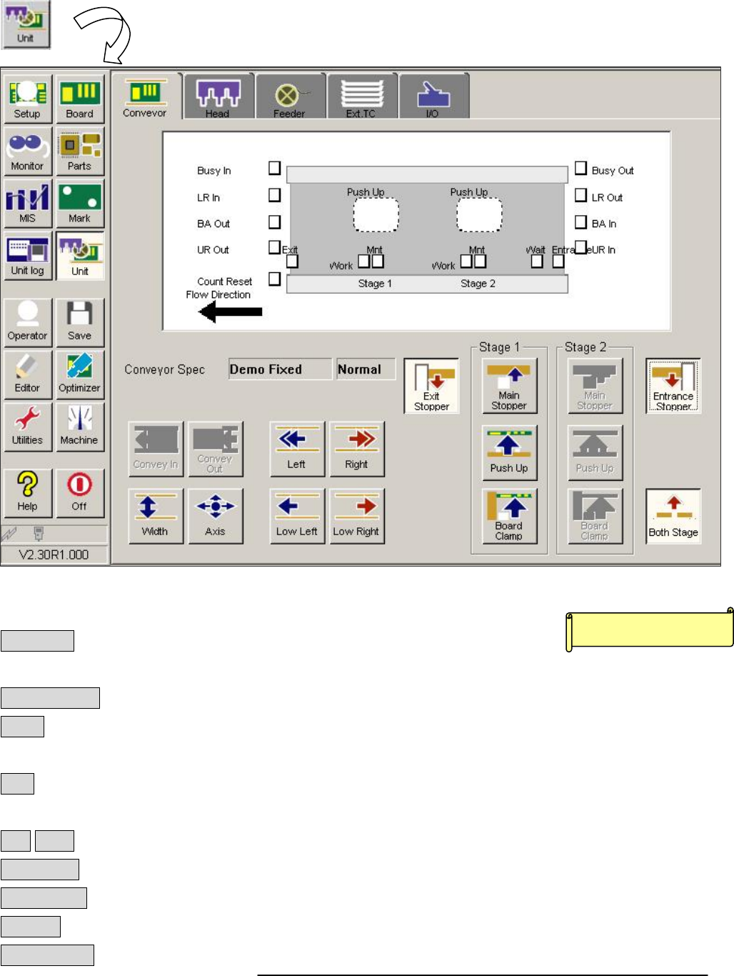选择 UNIT 下的“Conveyor”标签被选中后的画面如上图所示,下