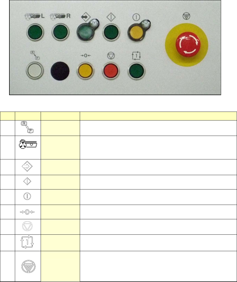 操作手册 Rev00 1- 4 ▼主机前侧 No. 名 称 功能概要 ① 触摸板监控器 具备触摸式操作功能的液晶监控器。 显示各种操作画面,通过触摸画面进行操作。 ② 操作面板 集中了各种开关,可直接控制装置的运行。 (参见下一页“操作面版” ) ③ 安全盖 在生产·设备运行中打 开安全盖时设备即刻停止、或 移动到目的位置 后停止运行。 在安全盖打开状态下,设备将慢速运行。 ④ 主开关 接通或切断设备的电源。 ⑤ 键盘 ・ 鼠标 用于操…