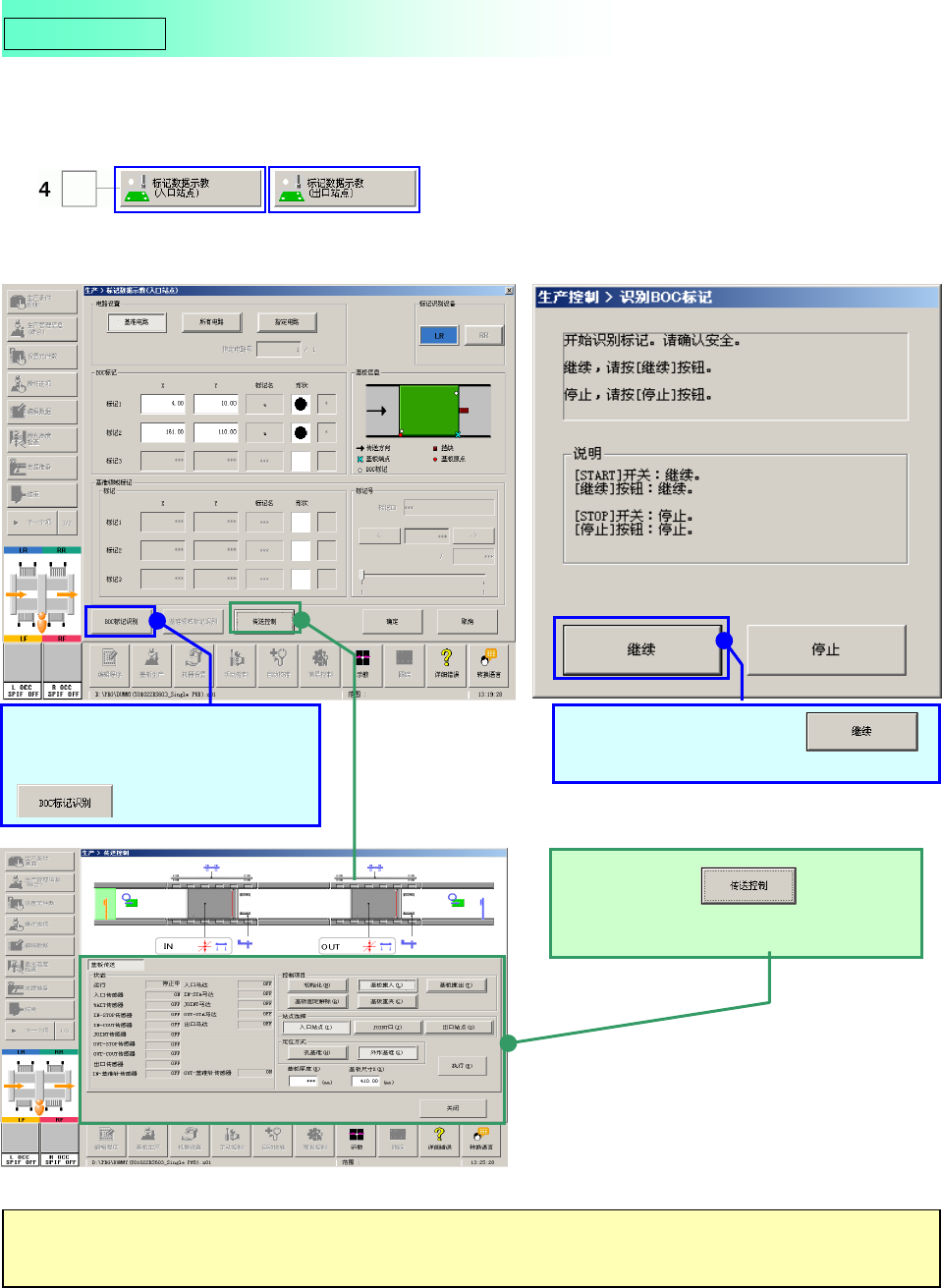 操作手册 Rev00 2- 15 因基板批次不同,BOC 标记或基准领域标记有变化时,需要重新取得标记信息。 ① 请按下按钮「标记数据示教」 (各个站点请都按同一操作方法操作) 。 ② 显示「标记数据示教」画面。 ※ 有关 BOC ・ 标记 基准领域标记的详细说明,请参见『操作手册Ⅱ』的「2-5-2-3 标记的示教」 的「BOC 标记位置、标记名称、形状」 。 支援准备 4 标记示教 也可按下按钮 ,传送基 板。 在这里只确认「BOC …