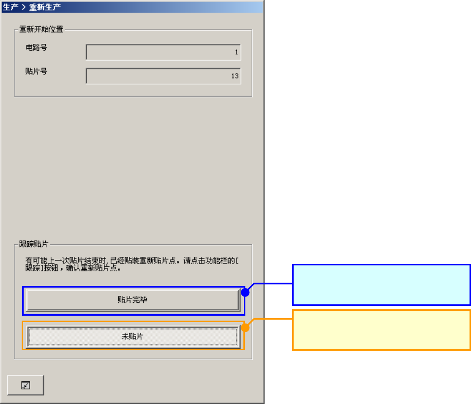 生产异常结束时(发生异步现象、生产异常结束)时,可按下列步骤继续生产。但是,这个运行至少要