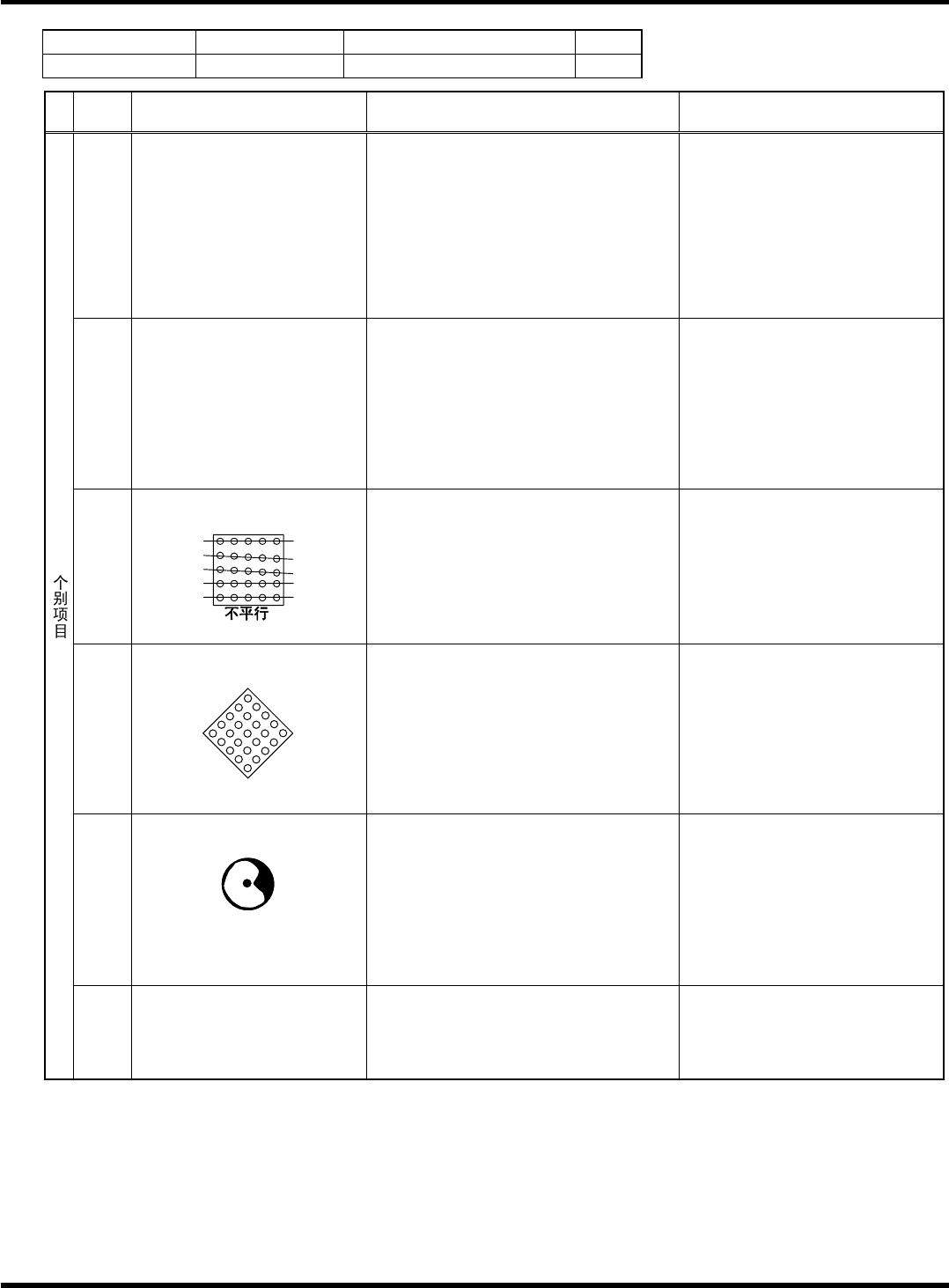 HGR14 附录 1.4 轮廓 识别错误信息 附录 1-100 参考 No. 形状编号 类别 201 ~ 205 4f BGA, CSP , ( µ BGA) , LGA 等 1/3 代码 内容 原因 对策 1) 吸着错误·吸着 异常 请确认吸着状态 。 20 特征符号在规定 外 1) 超出可识别范围 (式样 ± 30[ ° ] 以内 ) 请确认吸着状态 。 21 43 吸着角度异常 2) 吸着异常 请确认式样角度 。 1) L 设定错…