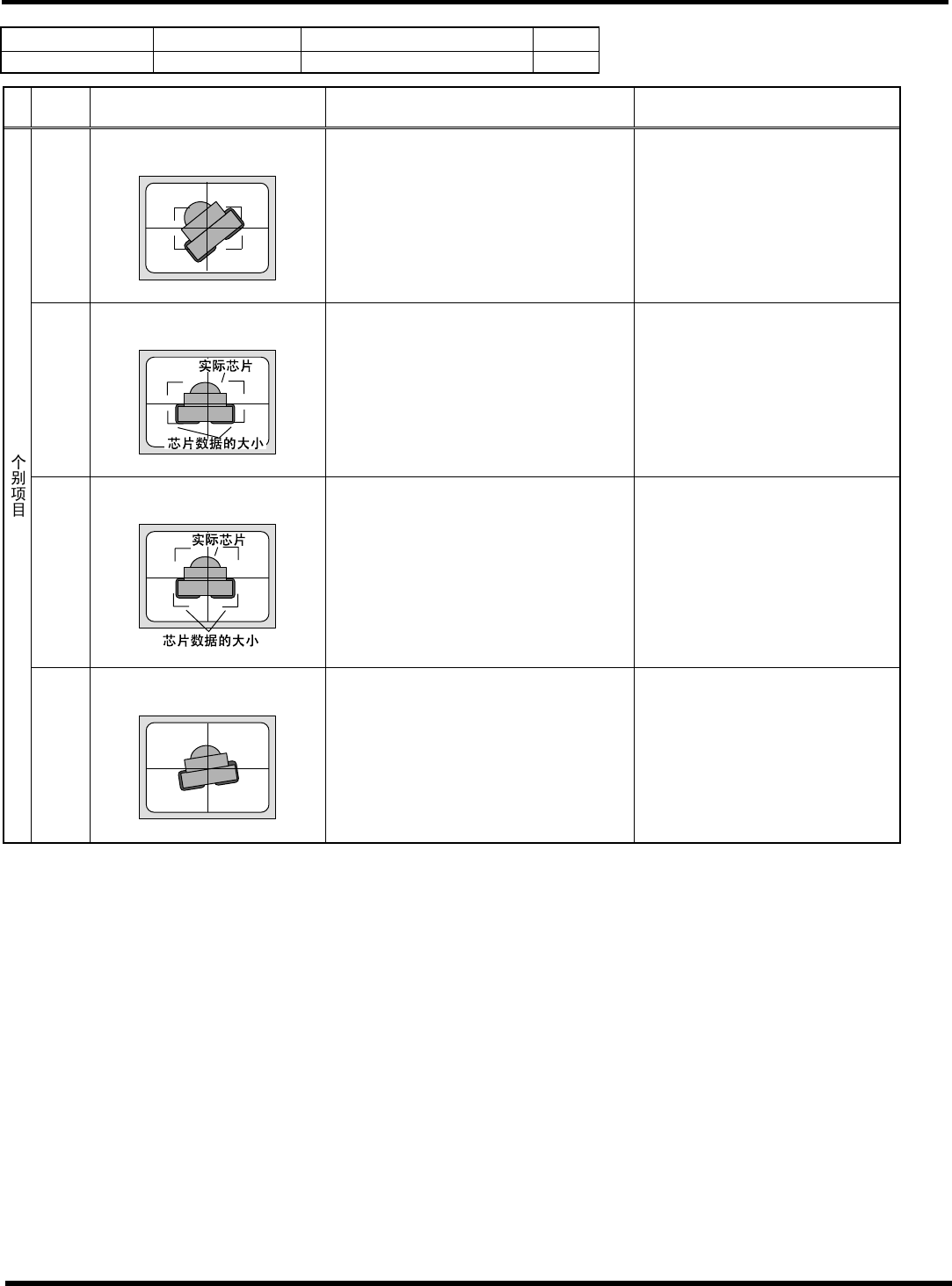 HGR14 附录 1.4 轮廓 识别错误信息 附录 1-89 参考 No. 形状编号 类别 128 5l 圆盘、焊锡球 等 1/1 代码 内容 原因 对策 1) L 、 W 设定错误 请正确设定 L 或 W 。 ( 芯片数据 ) 26 检测尺寸异常 < 错误画面 > 2) 部品异常 请确认对象部品 。 HGR14-C- PM A01-A03- 01