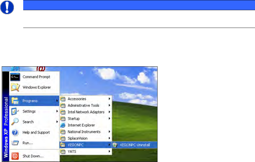 Wenn eine manuelle Deinstallation der Visionrechner-Software erforderlich sein sollte, muss diese