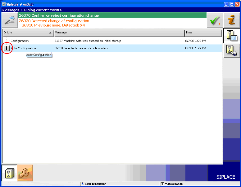 The operator is prompted to confirm or reject the Auto-configuration on the GUI.