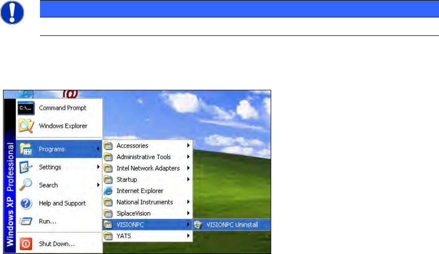 If it is necessary to uninstall the Vision computer software manually, this must be done in one of the